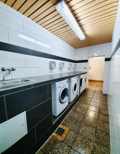 Falls während Ihres Aufenthalts eine Wäsche ansteht, stehen Ihnen bei den Sanitäranlagen moderne Waschmaschinen und Trockner zur Verfügung.